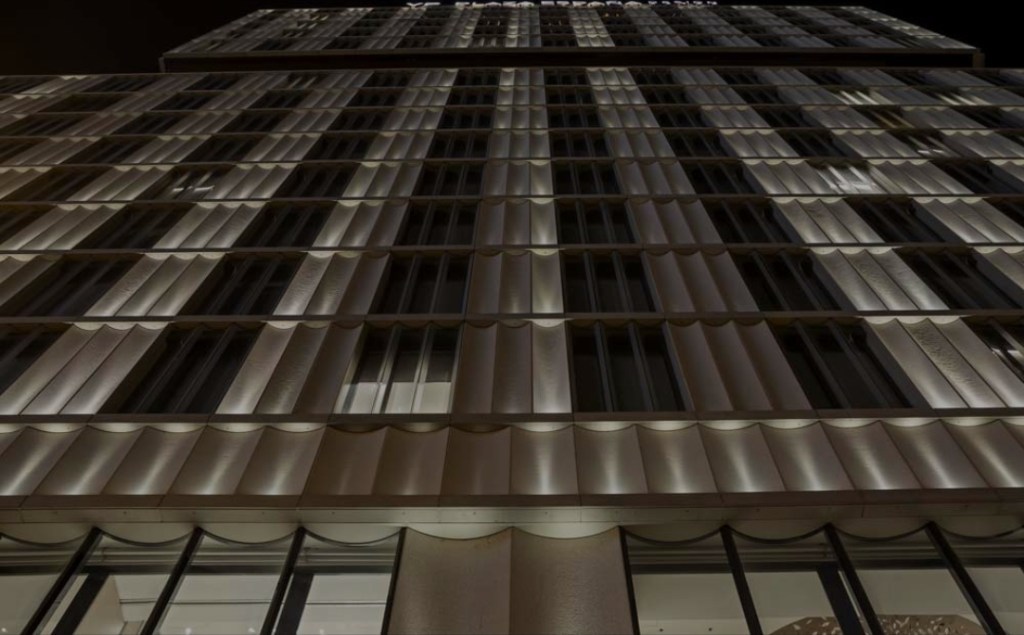 Invisible durante el día, la iluminación acompaña ese fluir de la vida urbana durante la noche.Tecnología led utilizada en todo el hotel, temperaturas 3000ºK y 2700ºK.
